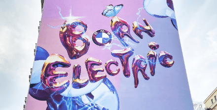 Together with CONCRETE. The Graffiti Agency, we applied a mural to an onsite advertising space and used electric vehicles and scaffolding instead of a diesel crane. Ecological paints were applied by hand instead of spray cans; we tapped green electricity for lighting. All design and communication were aligned with BMW’s global strategy of electrification.